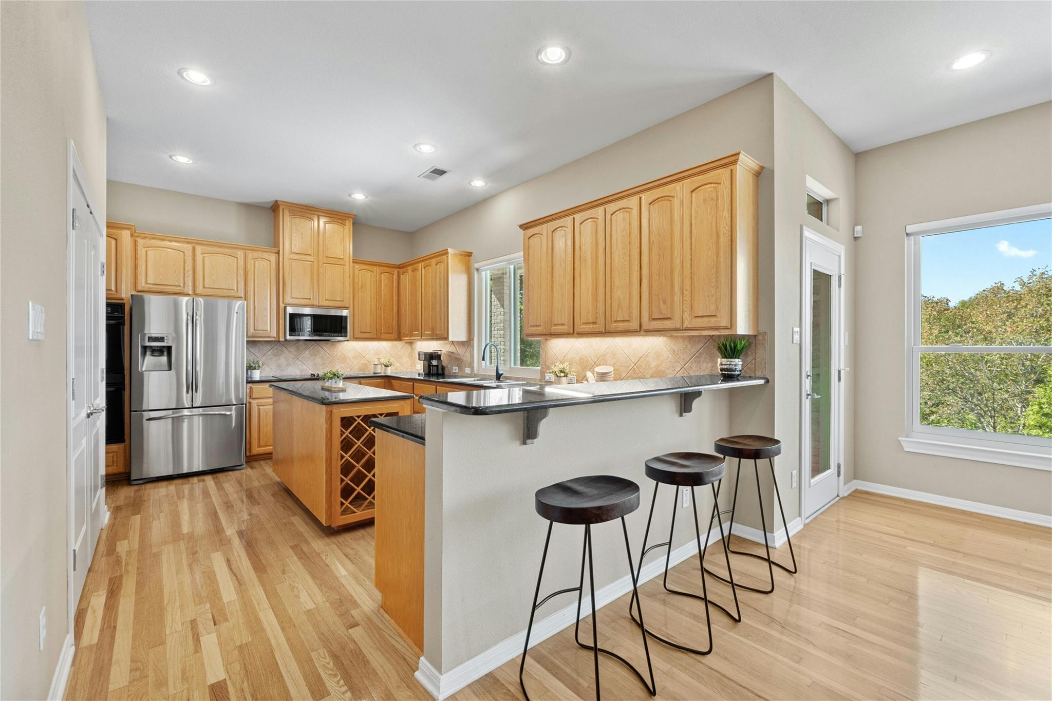 Seller is willing to do owner financing at a reasonable rate ask agent for details. This phenomenal custom home is located in the highly desirable community of River Chase. It feels like you are out in the country while only being one mile from IH35. This one acre private home site is located on a low traffic cul-de-sac with gorgeous hill country views from the deck and most rooms. Upon entry you will find a large flex space that could be used as a formal or study and can easily be converted into a private office with French Doors. The recently replaced Anderson double pane low-e windows and the Hunter Douglas Silhouette shades provide plenty of natural light. Everyday and formal dining can be utilized off the open eat-in kitchen space. The master suite features two closets and is separate from the other bedrooms for privacy. The secondary bedrooms feature an en-suite bath and a separate bath as well. A covered patio and open deck overlook the canyon for morning coffees and amazing sunsets. The low maintenance back yard can be enjoyed as is with countless possibilities a negative edge pool, adding grass, etc. The long-life, high-end metal roof complements the exterior and provides a traditional look. See list of features. This super convenient location is close to Wolf Ranch for shopping and restaurants and one of the newest HEB supermarkets.